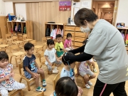 - 今日は、夏の遊びの終わりの会を行い、プール遊びの楽しさかった事や、出来るようになった喜びを、お友達や保育士と一緒に共有しました。
