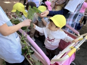 さつまいも堀りでは、「うんとこしょ、どっこいしょ」の掛け声に合わせて体を揺らして一緒に応援していたあおぞら組さん。長いツルに興味津々で触っていました。