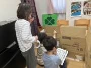 「次は段ボール使って何作ろうか?」と今から次の製作のイメージを膨らませている子ども達です。今後も子ども達中心で考えて、友達と協力する楽しさを感じながら製作を楽しんでいけるように関わっていきます。