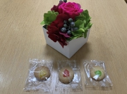こども達と一緒に、入れ物に添えられたお花を眺めながらクッキーを食べ、おしゃれな気分を味わっていました。