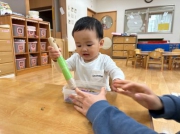 また、お部屋に飾り、きれいなドライフラワーが3か月で出来たので今月には色水遊びや感触遊びに広げていきました☆