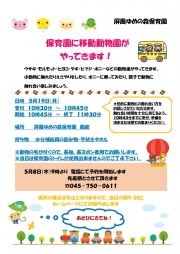 また、5月19日(月)に保育園に移動動物園がやって来ます。