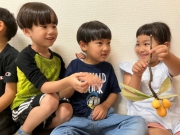 最後は給食室へ・・・「さくら組が収穫したビワを美味しくつくってください!」とお願いすると、おやつにビワのコンポートとして提供していただきました!甘い香りに子ども達も大興奮。おかわりをするほど夢中になって味わいました。