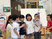 各クラスからは、七夕制作の発表もありました。 3歳児・4歳児・5歳児、それぞれが工夫したところや頑張ったところを発表し、皆で拍手を送り合う姿が印象的でした。