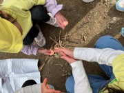 公園では、滑り台や遊具で遊んだり、ドロケイやだるまさんが転んだを楽しんだりと、思い思いに過ごしました。小枝を集めて焚火に見立て、ごっこ遊びを楽しむ姿も見られました。