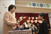 保育証書授与では、担任に名前を呼ばれると元気よく返事をし、園長先生から立派に証書を受け取りました。その姿からは、日々の活動や挑戦を通して培った自信と誇りが感じられました。お別れの言葉では、クラス全員が心を一つにし、これまでの園生活での思い出や感謝の気持ちを言葉にして伝えていました。その姿には、成長と友情の深まりがよく表れていました。