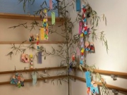 - 保育園では笹に子ども達の作った飾りや願いが描かれた短冊が飾られ七夕の雰囲気が感じられます。