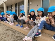 保育士が「おいもが焼けたよー!」と声をかけると「やったー!」と嬉しそうにテラスに座り、「甘くて美味しいね!」、「あったかいね!」など、保育士や友達と会話を楽しみながら食べていました。あっという間に食べ、「もっと食べたーい!」「おかわりある?」とおかわりもして大好評でした。