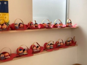 集会が終わった後、各クラス順番にパネルシアターのひな飾りを近くで見られるようにすると、表情や道具の違いなどを友達と教え合う姿や気付いたことを保育士に教えてくれる姿がありました。