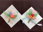 卒園式という特別な日、それぞれが素敵な装いで嬉しそうに登園してきました。すみれ組の子ども達がお祝いの気持ちいっぱいで飾りつけをしてくれた部屋で、親子で作ったコサージュを担任から胸に付けてもらいました。
