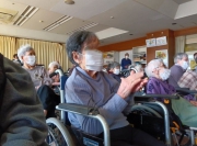 ドン!ドン!と大きく響く和太鼓の音は、耳の遠い高齢者の方々にも届き、日頃は体験できない貴重な時間でした。ご利用者はもちろん、職員も一緒になって盛り上がりました!