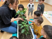ピーマン大きくなった、収穫したよ!たんぽぽ組(1歳児クラス)