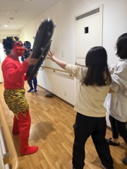 2月2日に、すまいるで少し早い節分行事をしました。鬼の格好をした職員を目の前にして泣いてしまう小さい子もいましたが、みんなで元気いっぱい豆まきをして邪気を追い払いました。