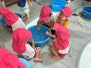 氷遊びとにじみ絵でかき氷づくり♪ たんぽぽ組 (1歳児クラス)