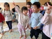 0・1歳児クラスは初めての参加でしたが、とても集中していて、手拍子をしながらリズムに合わせて楽しんでいました。
