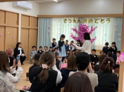 そして卒園式当日、緊張しながらも晴れやかな表情で入場する立派な姿が見られました。卒園証書授与では、園長先生から一人一人が証書をもらい「大きくなったら」と将来の夢を自信を持って伝える事が出来ました。一年間の思い出では、友達と心を一つに、楽しかった思い出を伝えていました。歌『ありがとうこころをこめて』『ありがとうの花』では、子ども達の伝えたい思いであった、“ありがとう”を感謝の気持ちを込めて職員と一緒に歌と手話で伝えられました。一緒に過ごしてきた友達や職員、保護者の方々と温かな卒園式を作り上げることができました。