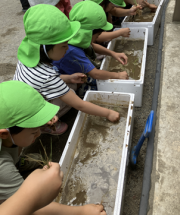 お米作りを通して、クラスの皆で、お米ができるまでの過程を実体験し、収穫を楽しみにしていきたいと思います。