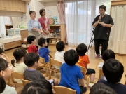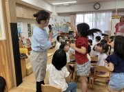 その後、園長先生からプール遊びや水遊びに関する大切なお話を読み聞かせていただきました。子どもたちは耳を傾け、「楽しいだけでなく、安全に遊ぶことも大切なんだ」と気持ちを新たにしているようでした。