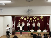 うちゅう組は保育園生活最後のおたのしみ会。少し緊張しながらも「緊張してないよ」「今日は頑張ろうね!」と年長児として自信をもって取り組んでいました。合奏「森の音楽家」、歌「世界中の子ども達が」「We're Going on a Bear Hunt」、表現遊び「ブレーメンの音楽隊」を披露しました。合奏では、友達と息を合わせ素敵な演奏を聞かせてくれました。表現遊びでは一人一人が力を発揮し、仲間と力を合わせて最後まで取り組み、達成感を感じていました。終わった後には「頑張ったね!」「まだやりたかったな」と笑顔で友達と気持ちを伝え合っていました。