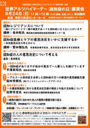 令和7年8月24日に、「世界アルツハイマーデー(認知症の日)講演会」が開催されます。多数の方のご参加お持ちしております。
