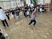 - 年間を通して全クラスでホールに集まりリズムをする機会を設けていて、今日は今年度最後の全クラスリズムでした。年長児ゆり組にとっては保育園で行う最後のリズム。子ども達のリクエストを盛り込んだ内容とし、どのクラスの子ども達ものびのびと体を動かせるようにしていきました。